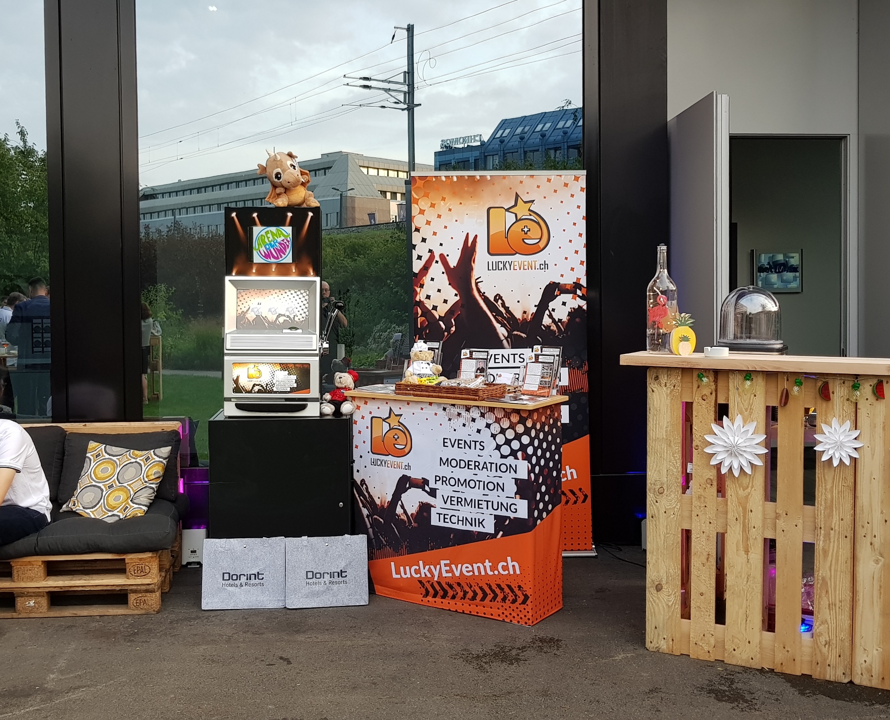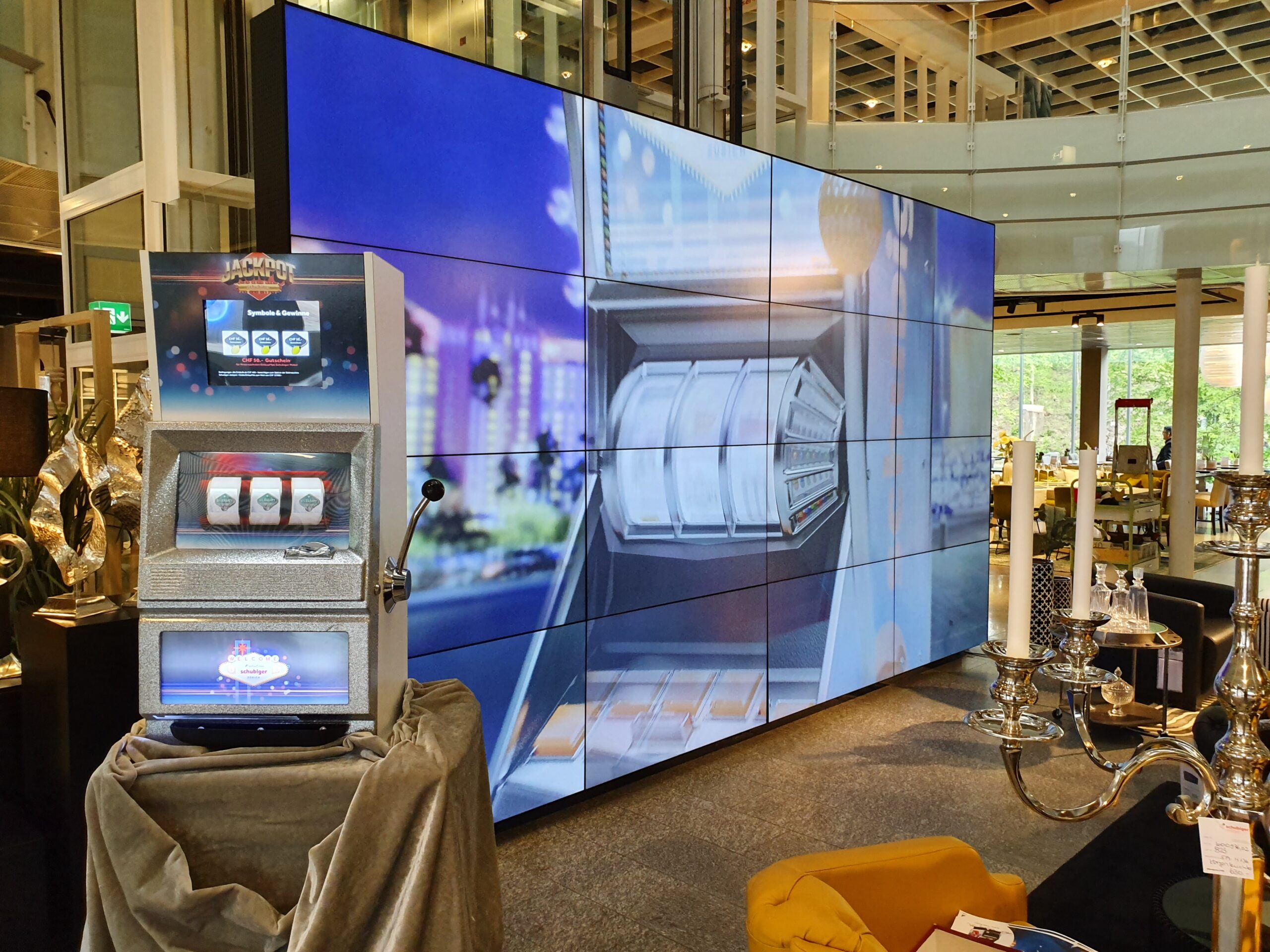 Ideal für Promotions, Messestände oder Empfangsbereiche. Durch ihre kompakte Bauweise benötigt sie wenig Platz und ist in wenigen Minuten aufgebaut. Die Slotmaschine lässt sich mit Ihrem Logo oder Eventdesign branden und auf Wunsch mit individuellen Gewinnmechanismen programmieren – vom kleinen Give-away bis zum Hauptpreis.