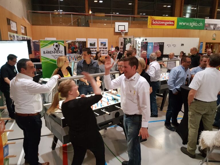 Das Tisch-Fussball-Turnier von Lucky Event bietet eine einzigartige Gelegenheit, Teamgeist und Fairplay zu fördern. Dank einer speziellen Software wird jedem Teilnehmer automatisch ein Partner zugewiesen, wodurch ausgeglichene Teams entstehen. Nach jeder Runde werden die Teams neu gemischt, sodass die Teilnehmer stets mit unterschiedlichen Partnern spielen. Dies fördert nicht nur die Interaktion unter den Teilnehmern, sondern sorgt auch für abwechslungsreiche und spannende Spiele.